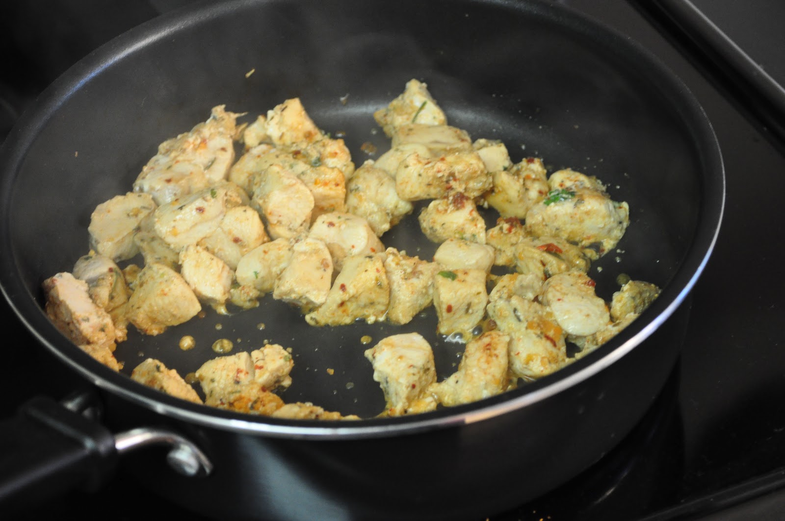 In a saucepan over medium heat, cook the Italian sausage until lightly brown. It took me about 8 minutes to get it completely not pink. (The picture below, still pink ;)